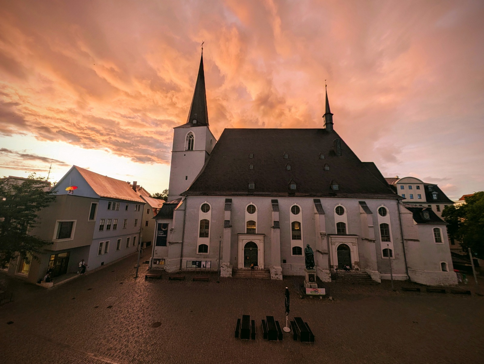 Der Herderplatz – ein geschichtsträchtiges Pflaster im Herzen Weimars. Von hier aus entstand seit dem frühen Mittelalter die Stadt Weimar. Direkt gegenüber der Stadtkirche St. Peter und Paul (Herderkirche) wartet eine Ferienwohnung auf Ihren Besuch. Die Wohnung befindet sich im dritten Stock eines klassizistischen Wohnhauses. Ein alter Keller im Garten stammt übrigens aus dem 13. Jahrhundert und gehörte vermutlich zu einem mittelalterlichen Wohnturm. Später gehörte das Anwesen dem wohlhabenden Rittergeschlecht von Kromsdorf. Unbedingt sehenswert und direkt vor der Haustür: Der berühmte Cranachaltar in der Herderkirche, der Wirkungsstätte von Johann Gottfried Herder.